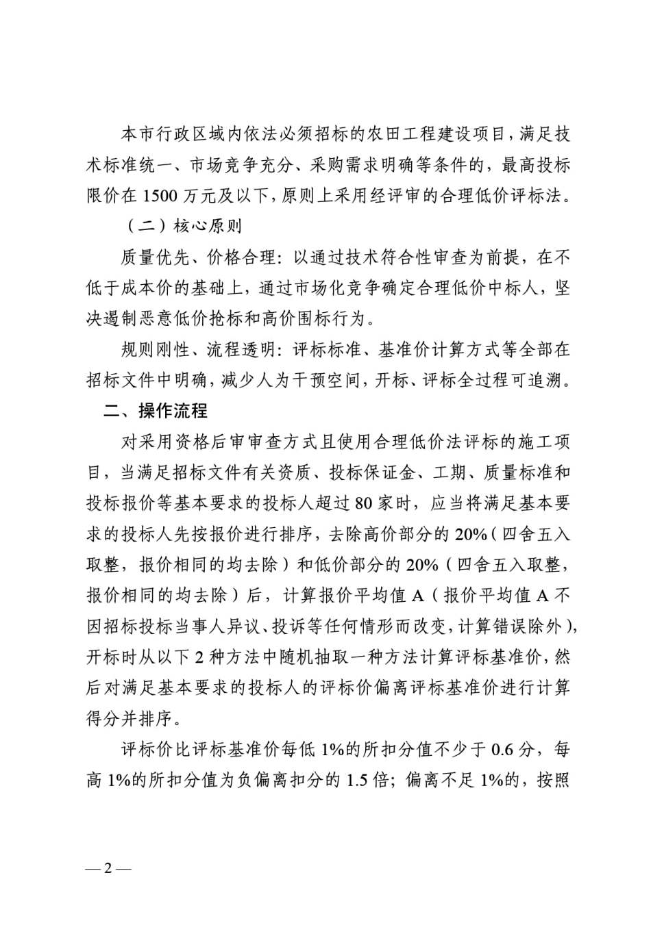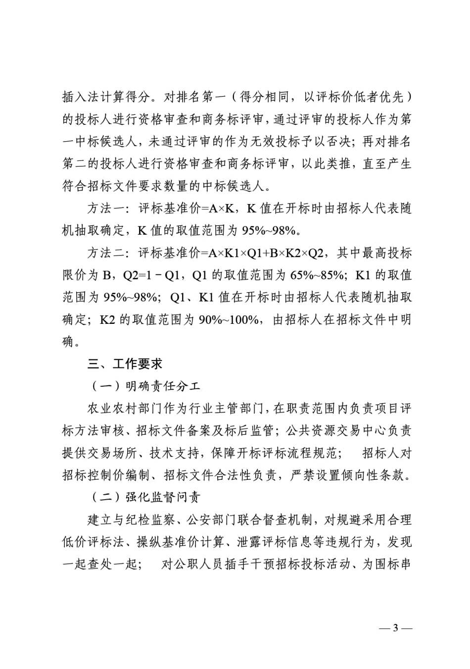 关于在农田工程建设招标投标活动中试行合理低价法评标办法的通知