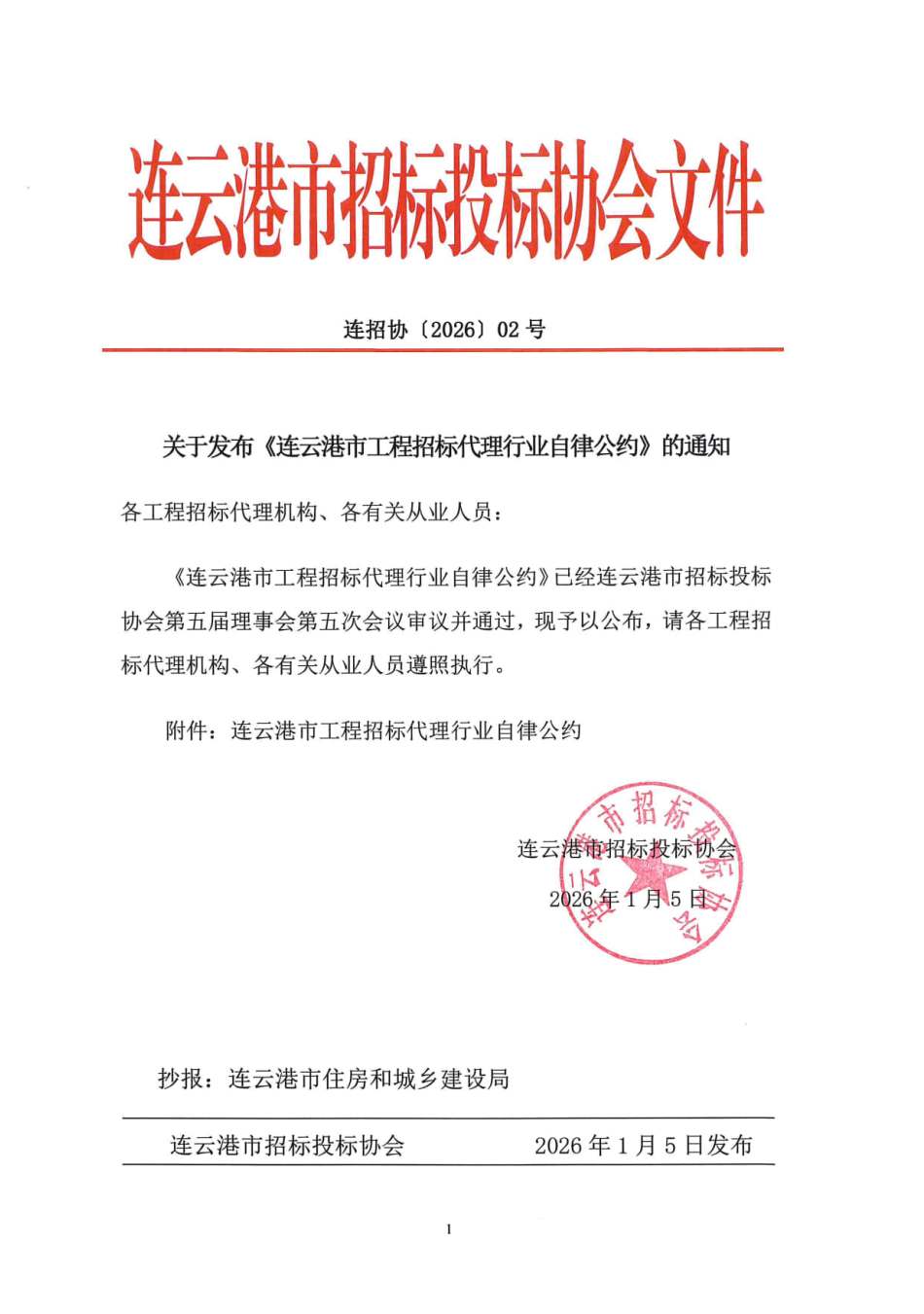 关于发布《连云港市工程招标代理行业自律公约》的通知