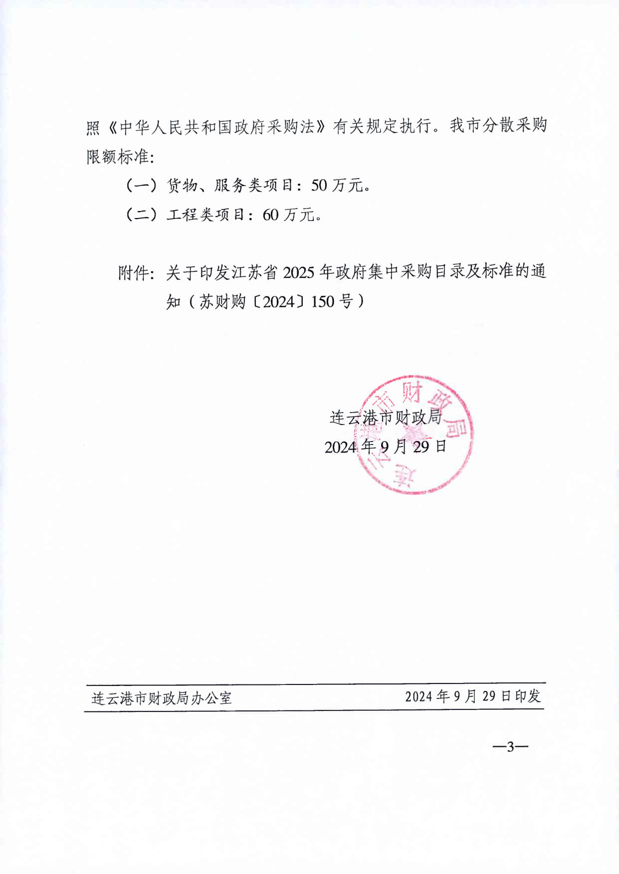 【集中采购目录】关于转发江苏省2025年政府集中采购目录及标准的通知(连财购〔2024〕39号)